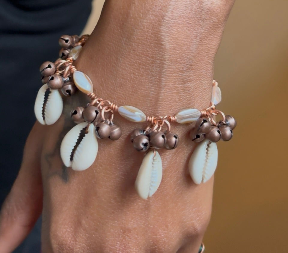 Kenyan Cowrie Shell & copper bell bracelet / anklet